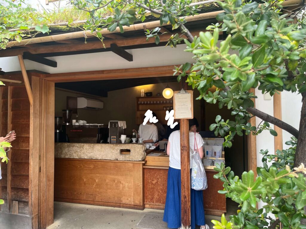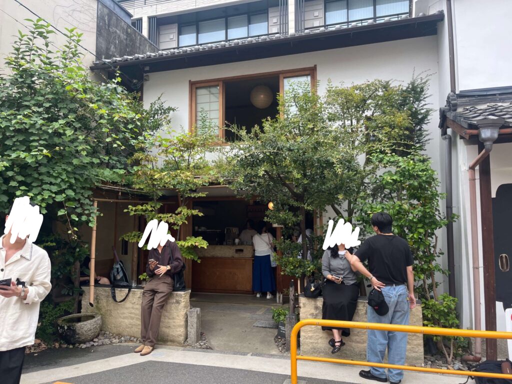 お店に向かって歩いていくと、少し特徴的な風景が目に入ります。「外国人がめちゃくちゃ多い」ということです。欧米系、アジア系、結構幅広くいろんな国の人がいる様子でした。数人のグループで来ている人がほとんどで、客層はほぼ外国人観光客という印象です。今はいろいろな情報がSNSで入手できる時代ですから、評判の店には世界中から人が集まるんですよね。外国人観光客も京都のコーヒーを求めているんだなと、何となく腑に落ちました。