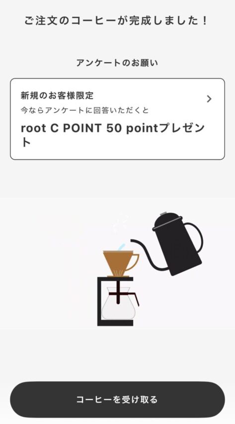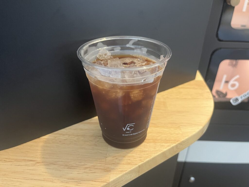 オーダーしてから5分くらいで出来上がりました。完成すると小さな宅配ボックスみたいなところにコーヒーがセットされて、アプリに通知が届く仕組みです。通常1杯500円のところ、初回クーポンを使って300円でゲットできました。