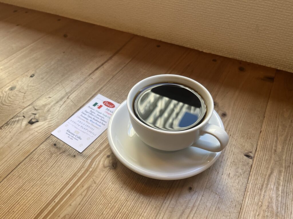 一口飲んでみると、焙煎度合いは中深煎りくらいでしょうか。デカフェ特有の物足りなさは全く感じられず、程よいコクがしっかりと感じられます。