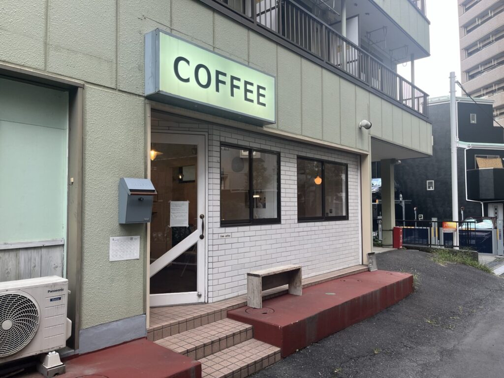 店舗に到着すると、白い壁に「COFFEE」と書かれたシンプルな看板が目に飛び込んできます。派手さはありませんが、一目でコーヒー専門店だとわかる佇まいですね。
